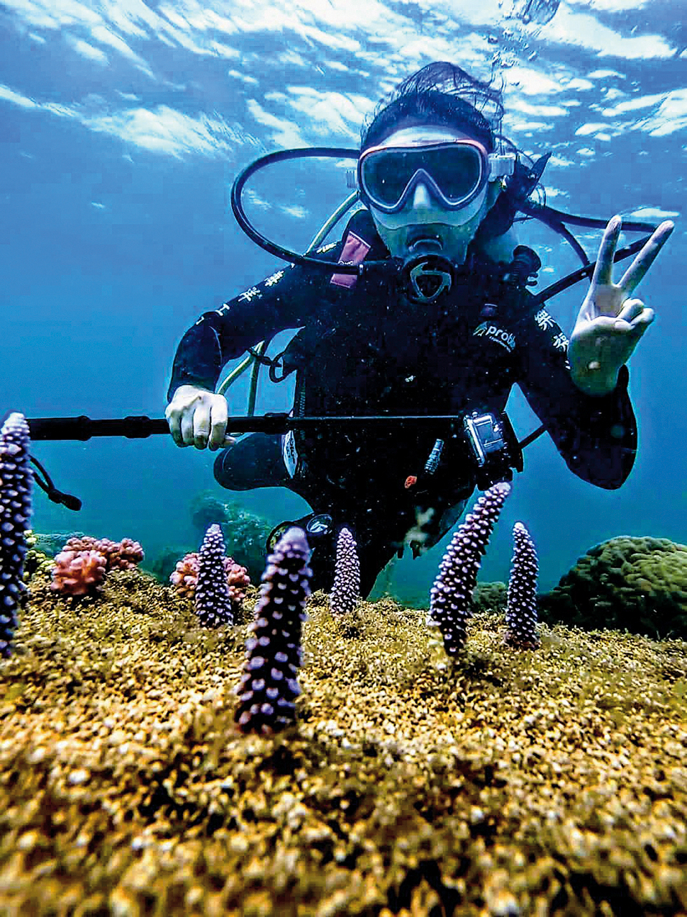 Ke says that it took teamwork to build the coral garden, noting that they relied heavily on the local diving industry’s help to install the modules and keep the budding corals free of mud and algae. But Ke feels that his greatest achievement as a civil servant has been his cultivation of seaweeds, not his work with coral.