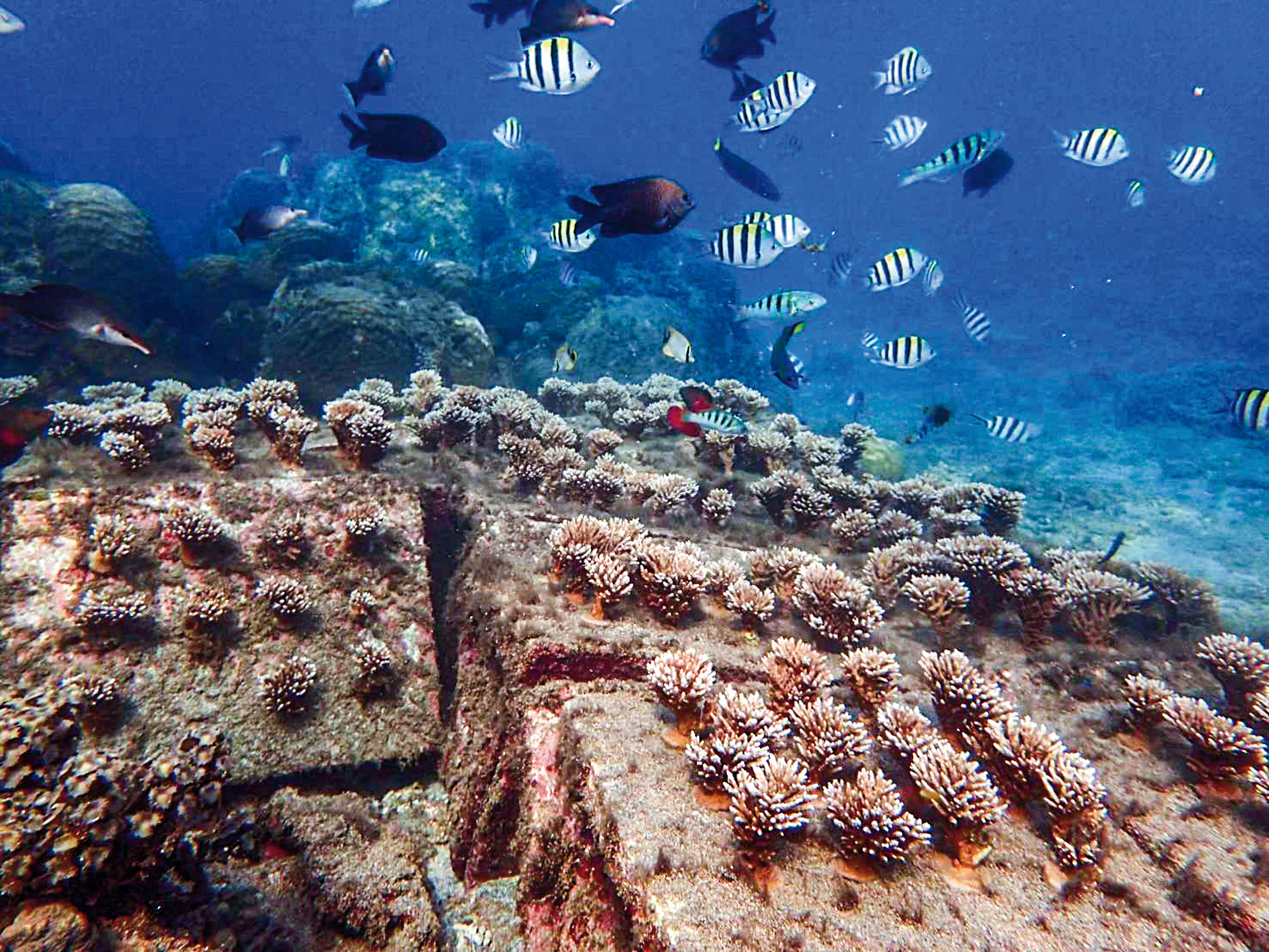 The Penghu County Agricultural and Fisheries Bureau’s successful restoration of this reef ecosystem has provided these tropical fish with a home.