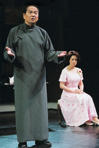 In the more than ten years since he discovered the theater, he has played emperors, company presidents, priests, and even alcoholics and a user of prostitutes. Two years ago, in another TV drama A Man at Fifty, he played a middle-aged man who, looking for his lost youth, has sex with a high-school girl. He was again nominated for the Golden Bell best actor award.