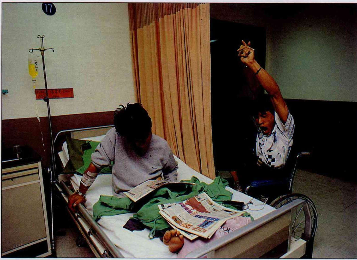 National Taiwan University Hospital celebrated the 100th anniversary of its founding at the end of June. Amidst all the high-and-mighty public figures in attendance, quite unexpectedly two young men holding crutches, with urine bags tied to their waists, each with only one leg, yet effusive and optimistic, became the center of attention. Chung-jen and Chung-yi have grown up!