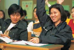 The inability to communicate in Chinese is a serious obstacle for the foreign bride, making it difficult for her to integrate into family and society and to raise the next generation. For this reason local areas have instituted Chinese classes for them. The only problem is there are still only a few who are able to get away from the home and attend. (photo by Pu Hua-chih)