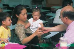 Statistics show the number of children that have been born to international marriages now exceeds that of children born to Aboriginal parents. In the year 2002 there were more than 247,000 births in the Taiwan Area, including Kinmen and Matsu. Of these, more than 30,000 were born to foreign (including mainland Chinese) women. The ratio thus reached 12.46%. In other words, of every 100 newborns in Taiwan last year, 12 were born to foreign spouses.