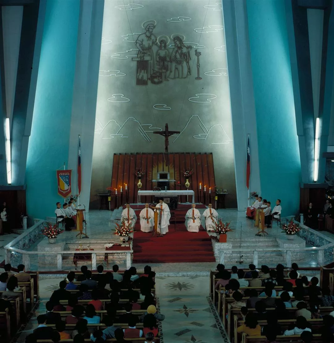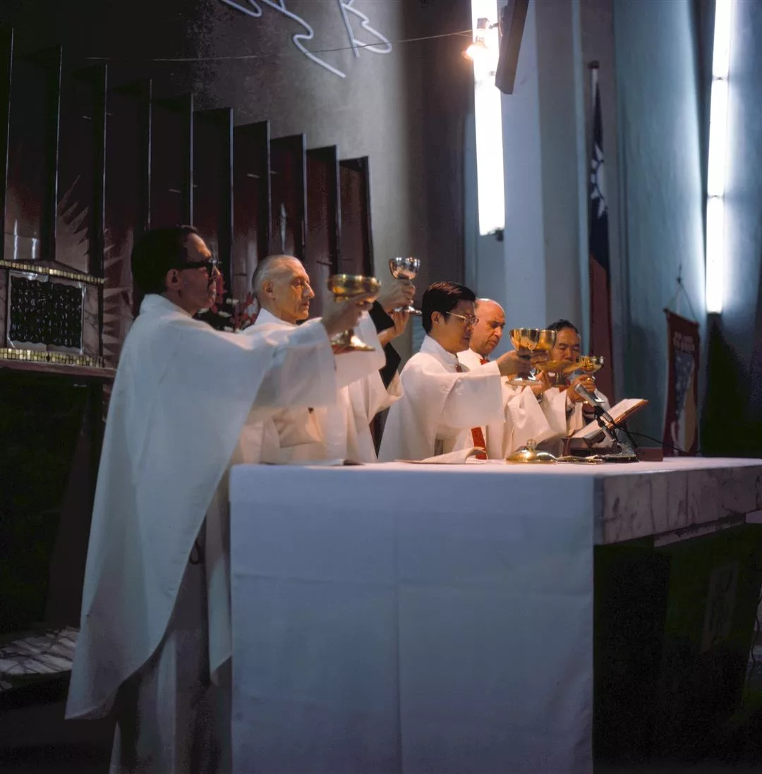 Above: The Immaculate Conception Church at Wanchin in Pingtung County, is the oldest Catholic church in Taiwan. The exterior is primitive and elegant, and the interior, majestic and solemn. Right: A midnight mass proceeds in the Holy Family Church.