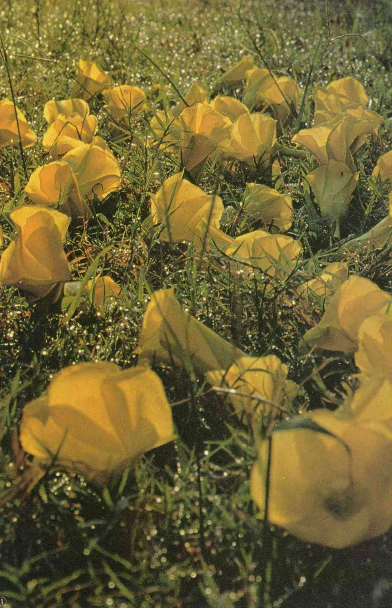 1. A profusion of yellow flowers adds a touch of color to the campus lawn.
