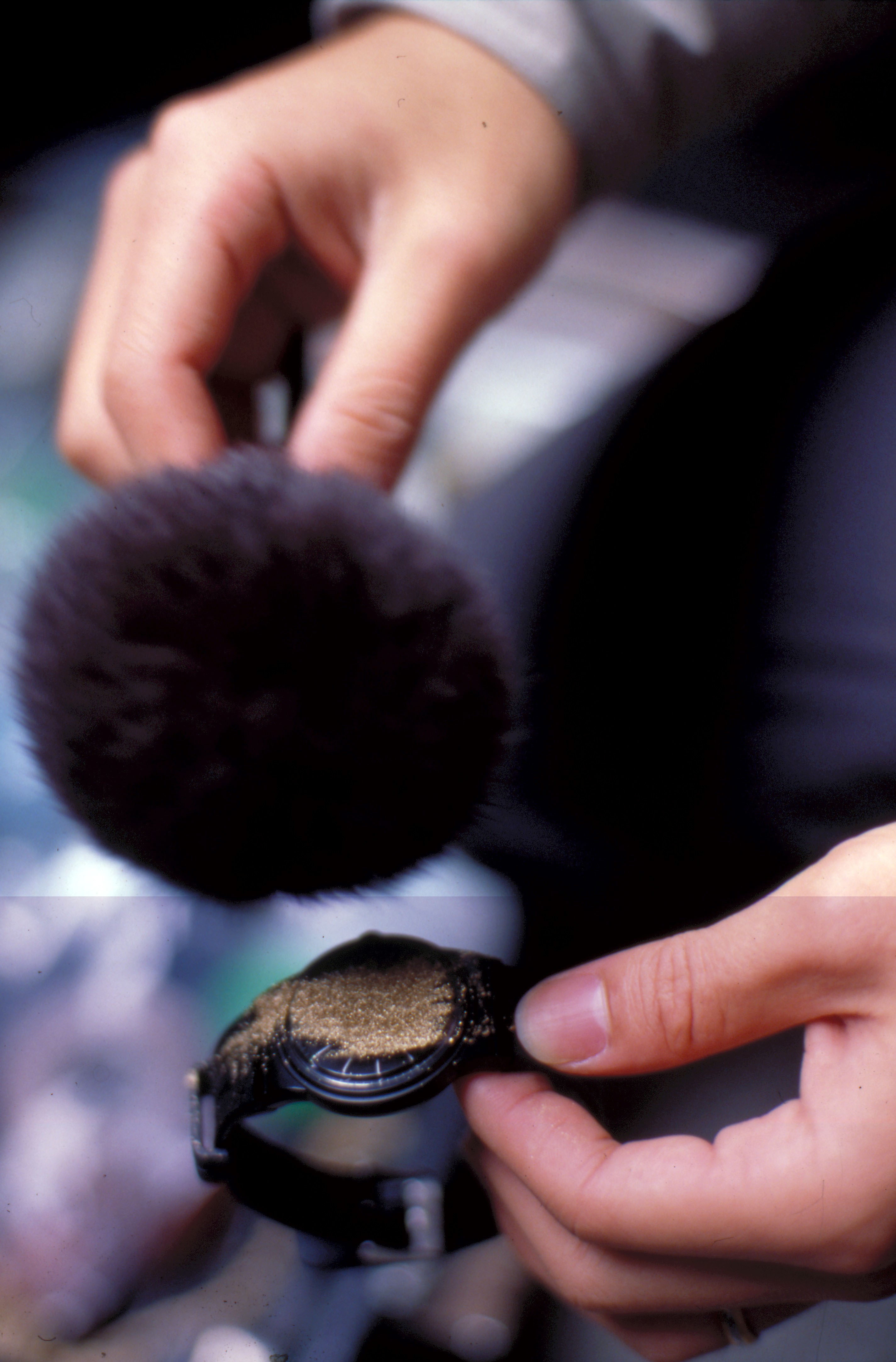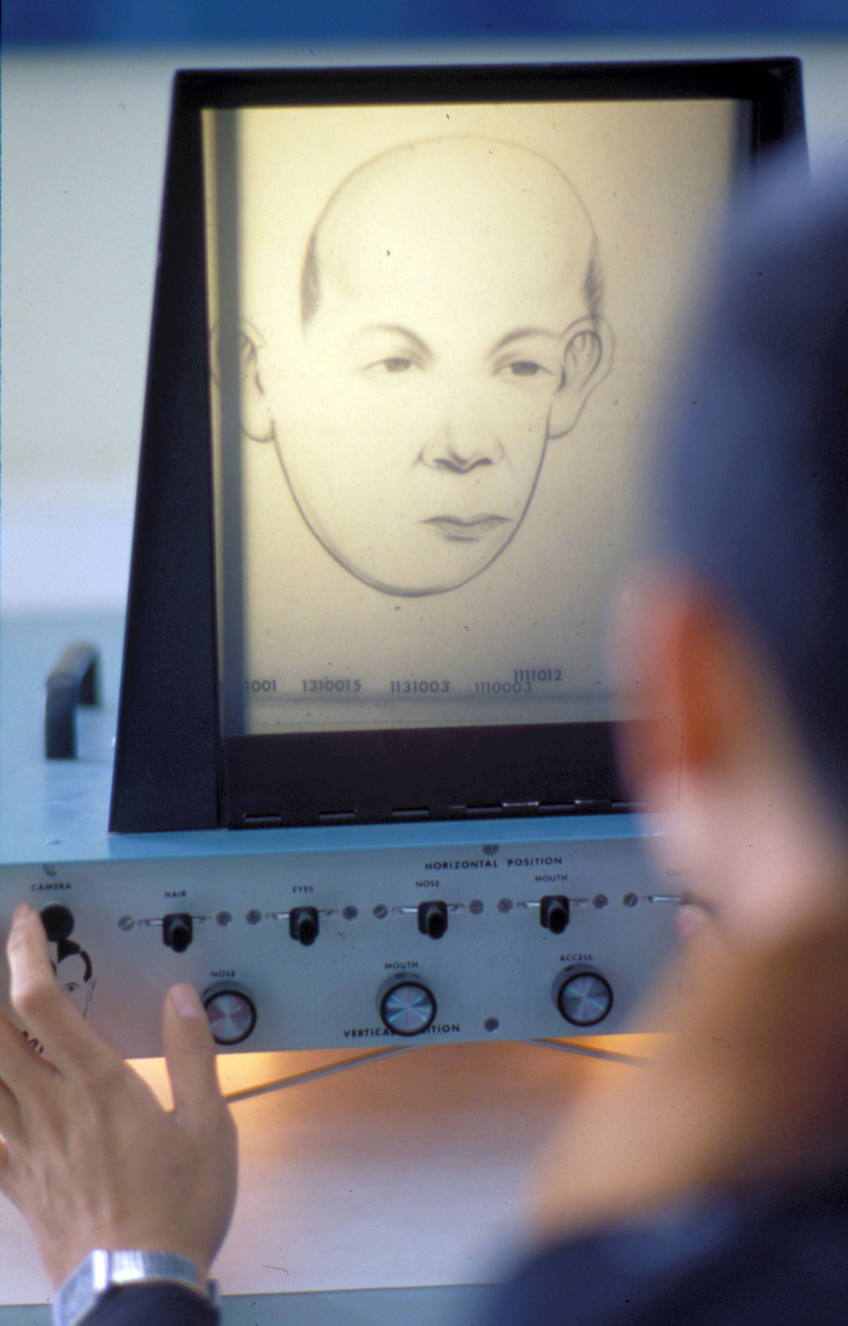 A student practices using a composite face machine, one of the tools of detective work.