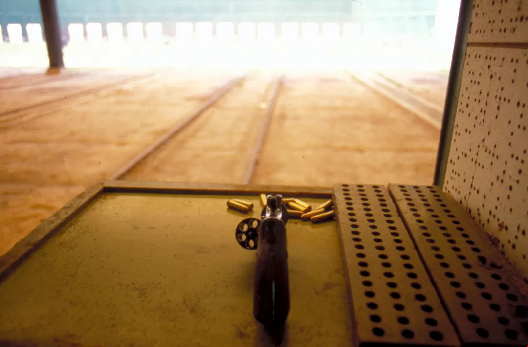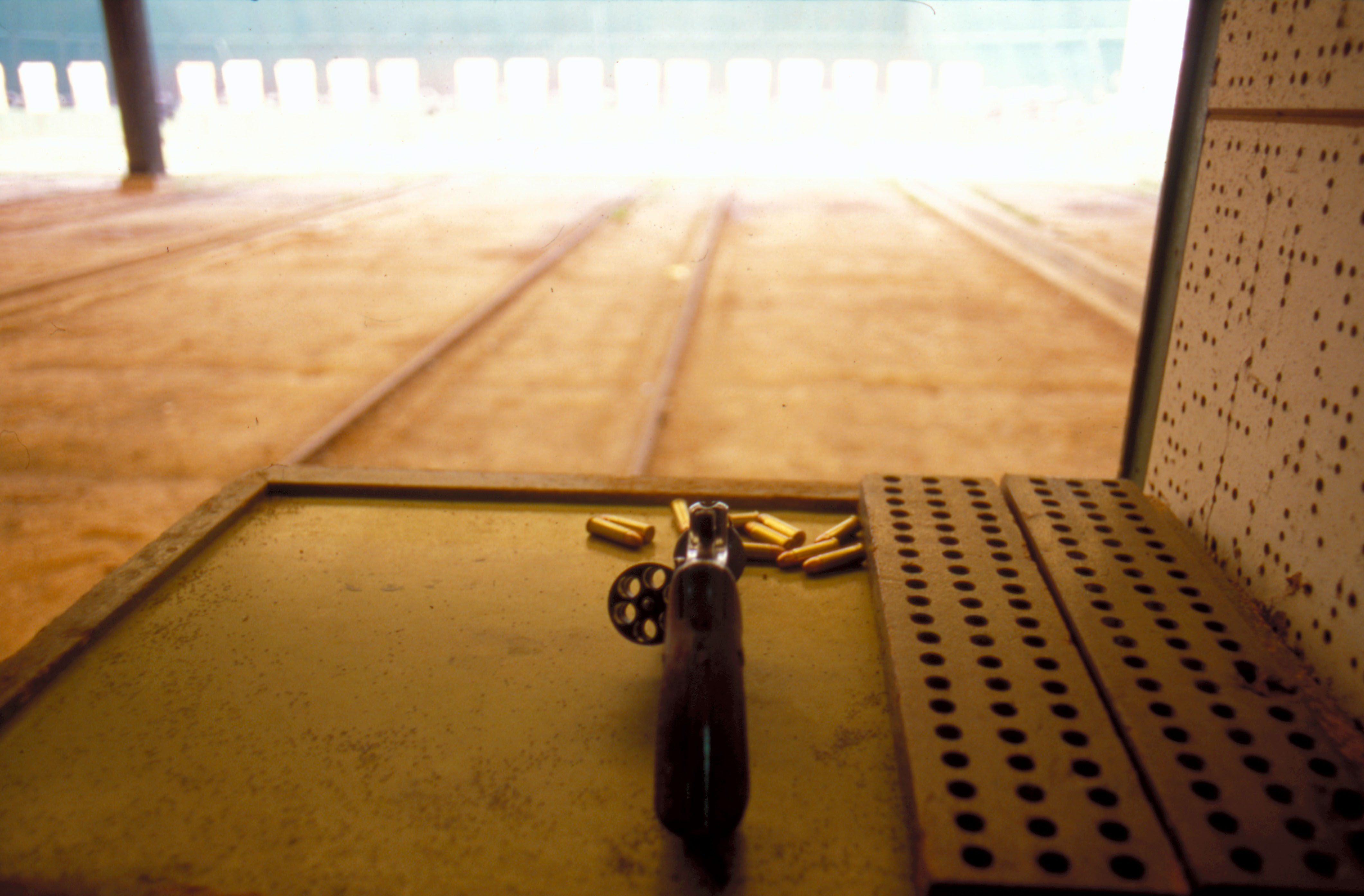 Using a gun is one of the students' specialities. Shooting fpractice requires concentration.