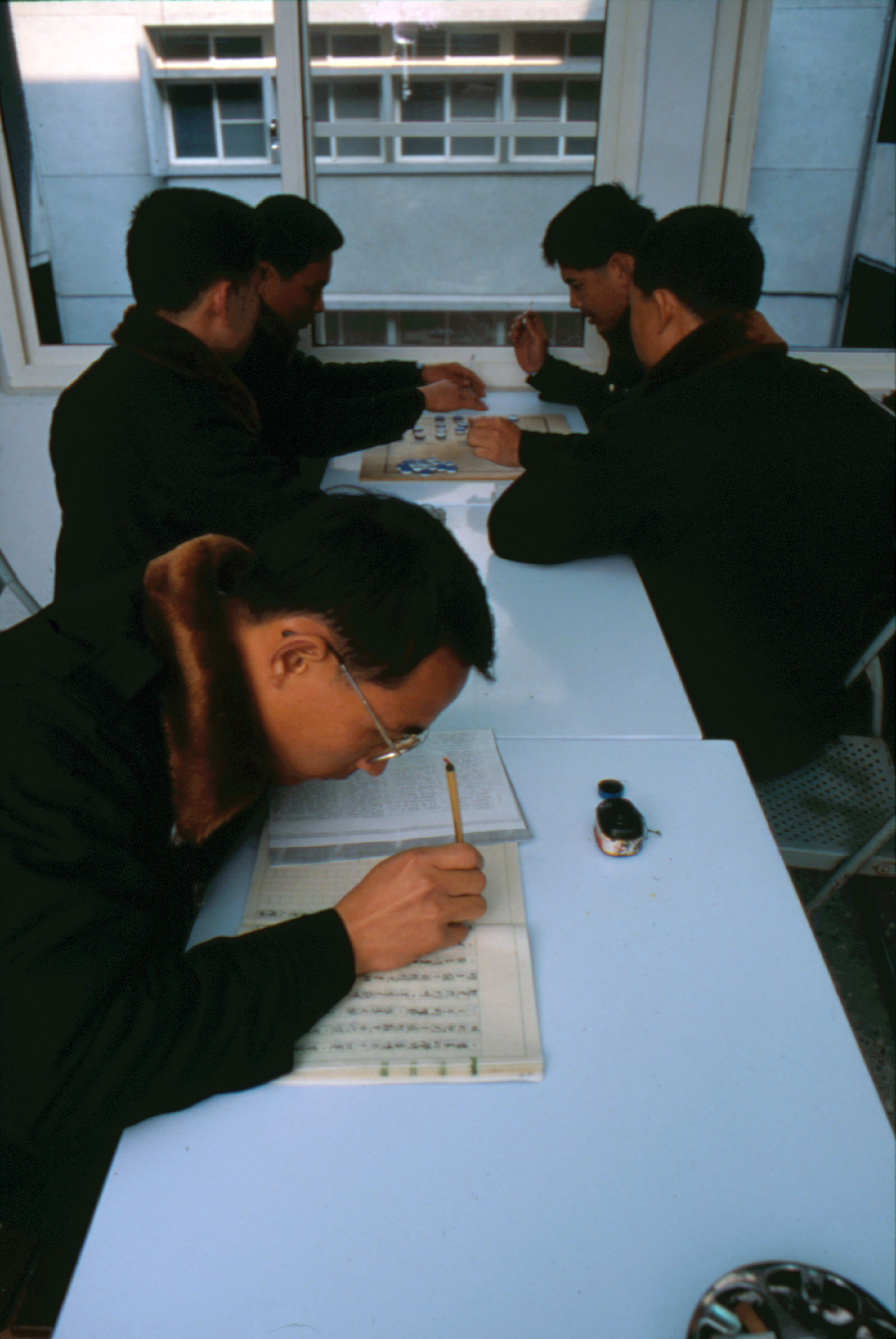 (Above) Students practice calligraphy in their spare time to cultivate character.