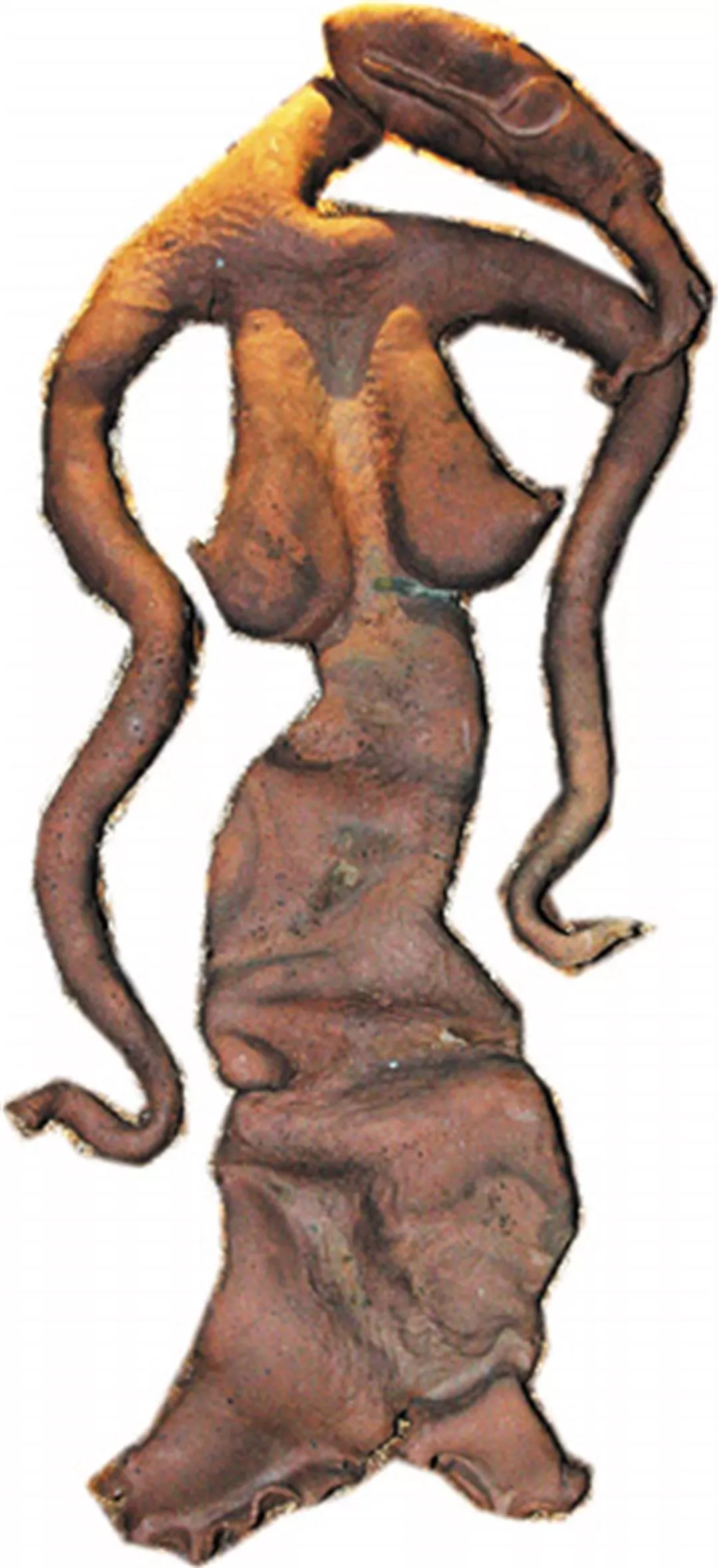 After paying the bill, diners enjoy taking the open staircase to tour the building floor by floor and see the antiques and sculptures placed arbitrarily about. The earthenware images of wildly dancing women, the iron sculpture of a female hair dancer, flowers and waving hair sculpted from clay, and feminine figures slapped together out of old wood and branches kindle passionate exchanges, as if in the gallery of a famous artist. Some may assume that the artworks filling the restaurant are the creations of several artists working together. In fact, the pieces large and small--including even the earthenware crockery offered to patrons--are the work of Hsieh's hands.