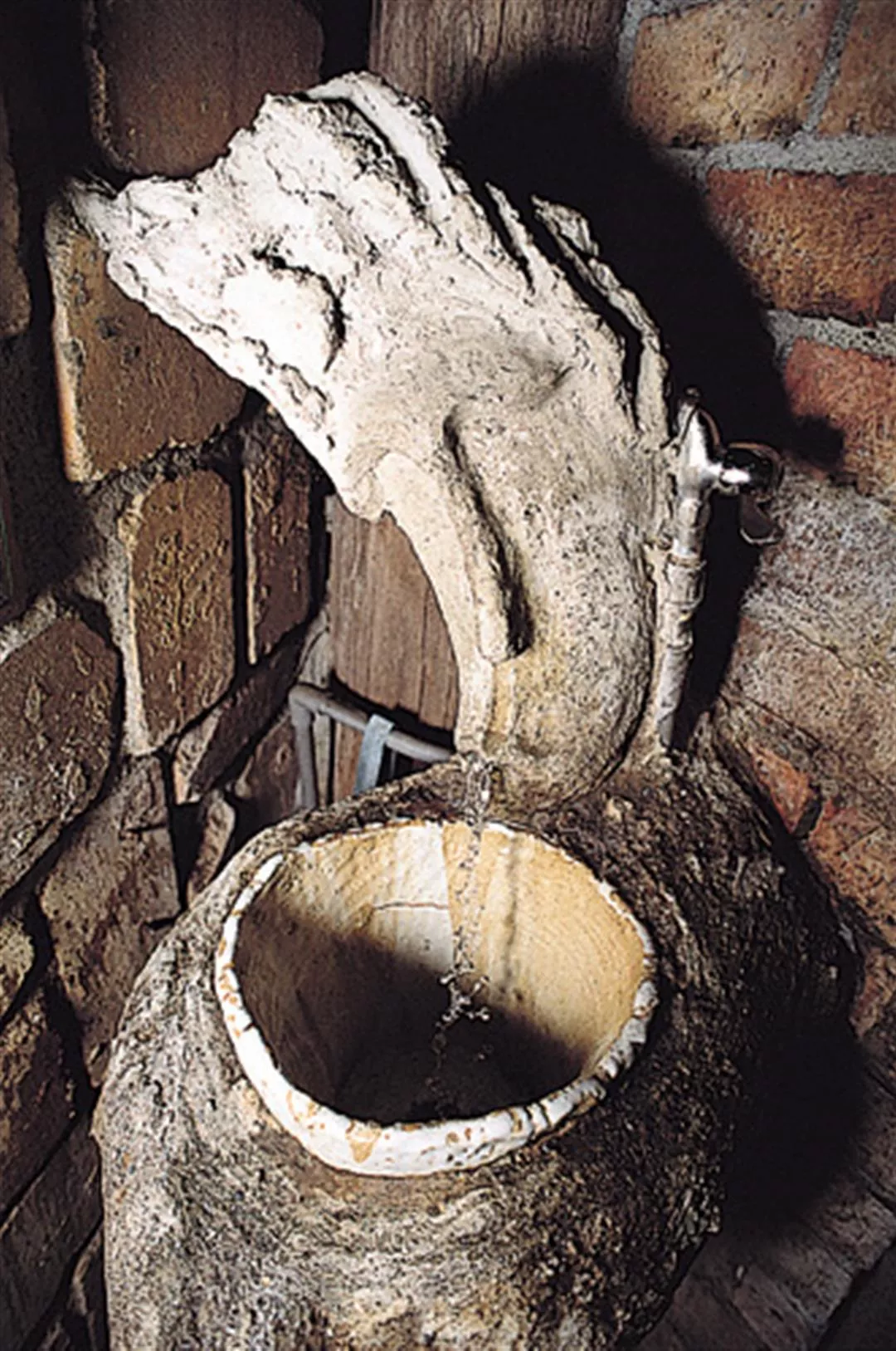 This sculpture made of cement mounted on driftwood exudes an unexpected elegance, and is Hsieh's favorite piece. It can be seen in the Five Cent Driftwood House in Taichung.