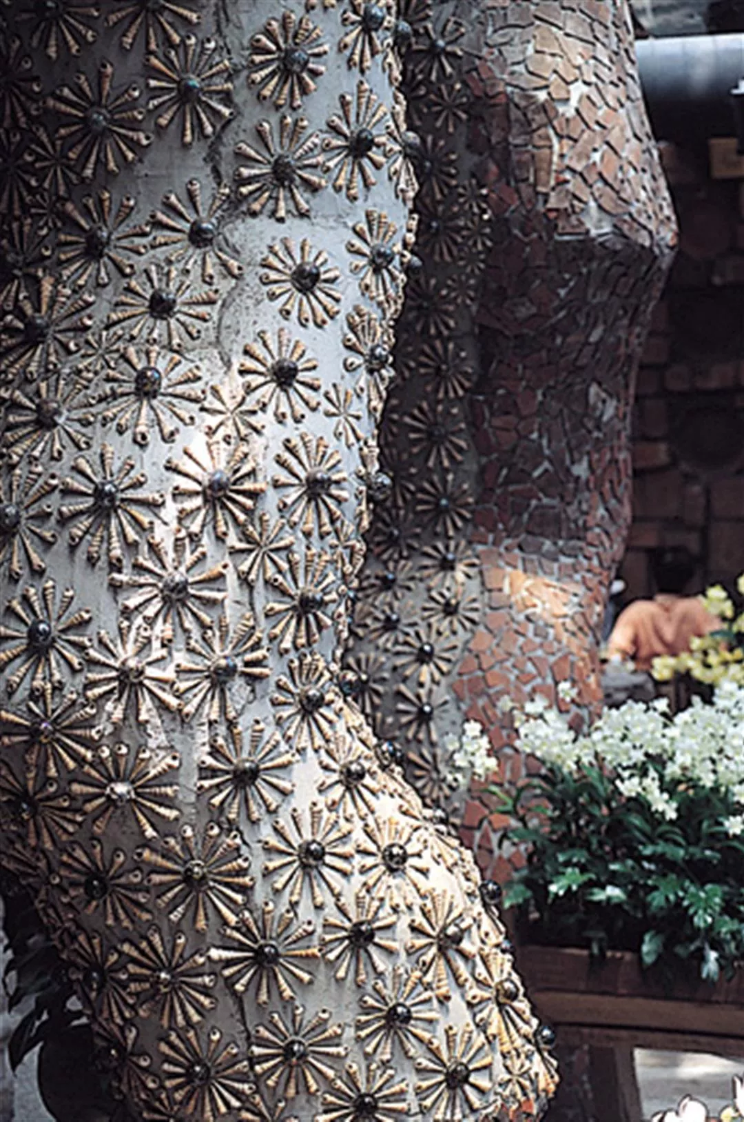 Over the last several years, pecu-liar buildings have been popping up around Taiwan. Irregular exteriors, plus a postmodern collage work of earthenware and clay sculptures mounted onto discarded materials like charred bricks, driftwood, dried branches, stone and even oyster shells, transform them into artistic spaces brimming with originality and intrigue thanks to the designer's ingenious placement.