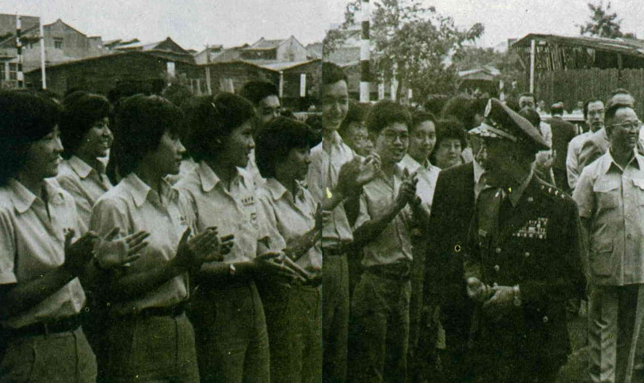 General Wang Sheng is warmly received by students of the Kuokuang Opera School.