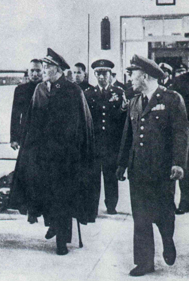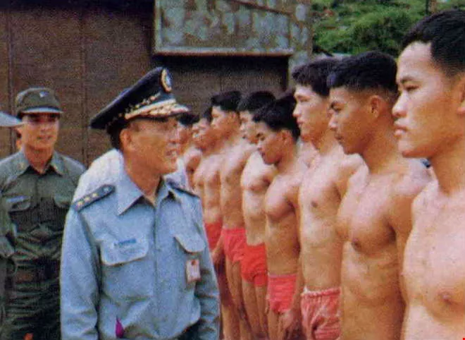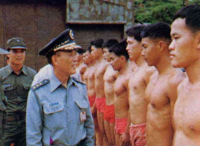 In his capacity as President of the Political Warfare College, General Wang escorts the late President Chiang Kai-shek on an inspection visit.
