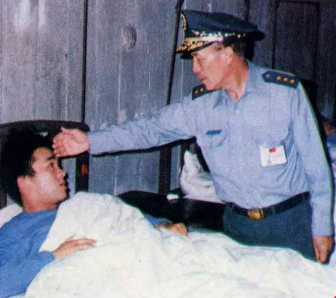 The general visits soldier-patients at a military hospital in Matsu.