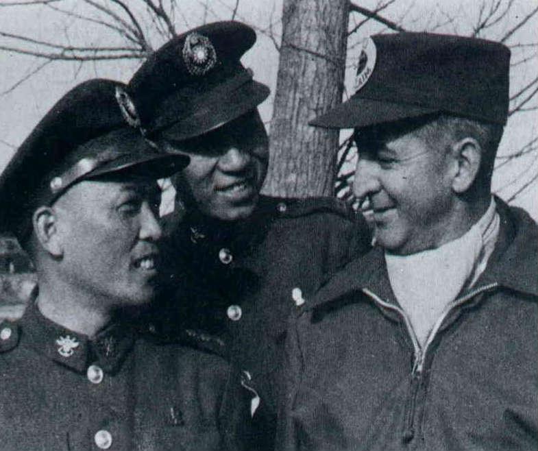 Above: In order to welcome freedom seekers who fled mainland China, General Wang visits Korea. Here he discusses the matter with a U.S. soldier on station in Korea. Right: Upon inception of the Political Warfare College, General Wang was its director-general for education. He poses for a picture with now President Chiang Ching-kuo, then director-general of the Department of Political Warfare of the Ministry of National Defense and then President Wang Yun-su of the college. Far right: He takes time out from his routine to receive foreign guests interested in ROC views on political warfare. Shown here is meeting with General J. R. Dutton of South Africa.