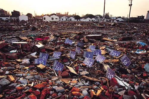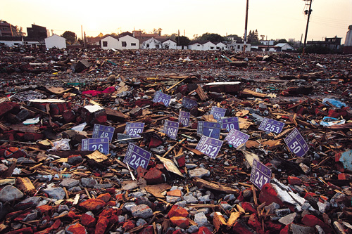 Of over 800 military dependents' villages, less than 200 remain after recent demolitions. Their distinctive culture is rapidly vanishing. Pictured here, the rubble of Chengkung New Village in Yangmei, Taoyuan County.