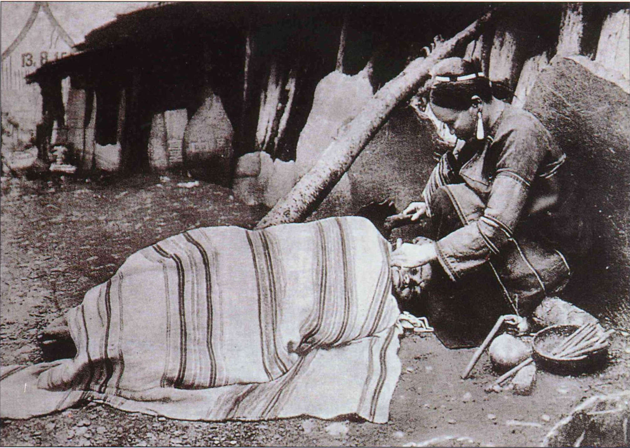 On the following day the sister took some black ashes and wiped her face with them. Then she waited at the foot of the mountain. Not long after, her brother showed up. He didn't recognize her as his sister, so he had intercourse with her, and the human race was able to multiply. From then on, the myth concludes, there was the custom of tattooing faces.