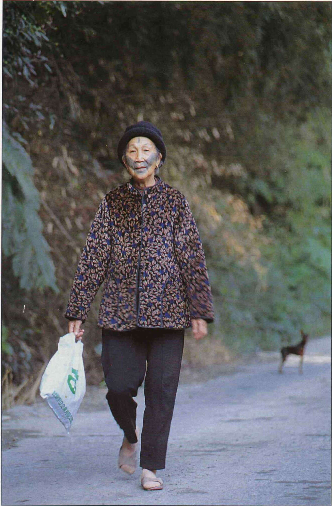 In Hsiangpi Village, Tai-an Rural Township, Miaoli County, 98-year-old Douyu Bawai, a lady with facial tattoos, is sitting in front of the entrance to her home, basking in the warm sun. Today, in this little mountain village of less than 200 people situated on the border of Miaoli and Taichung counties, there is excitement in the air, because once again visitors have arrived to see this "facial tattoo treasure."
