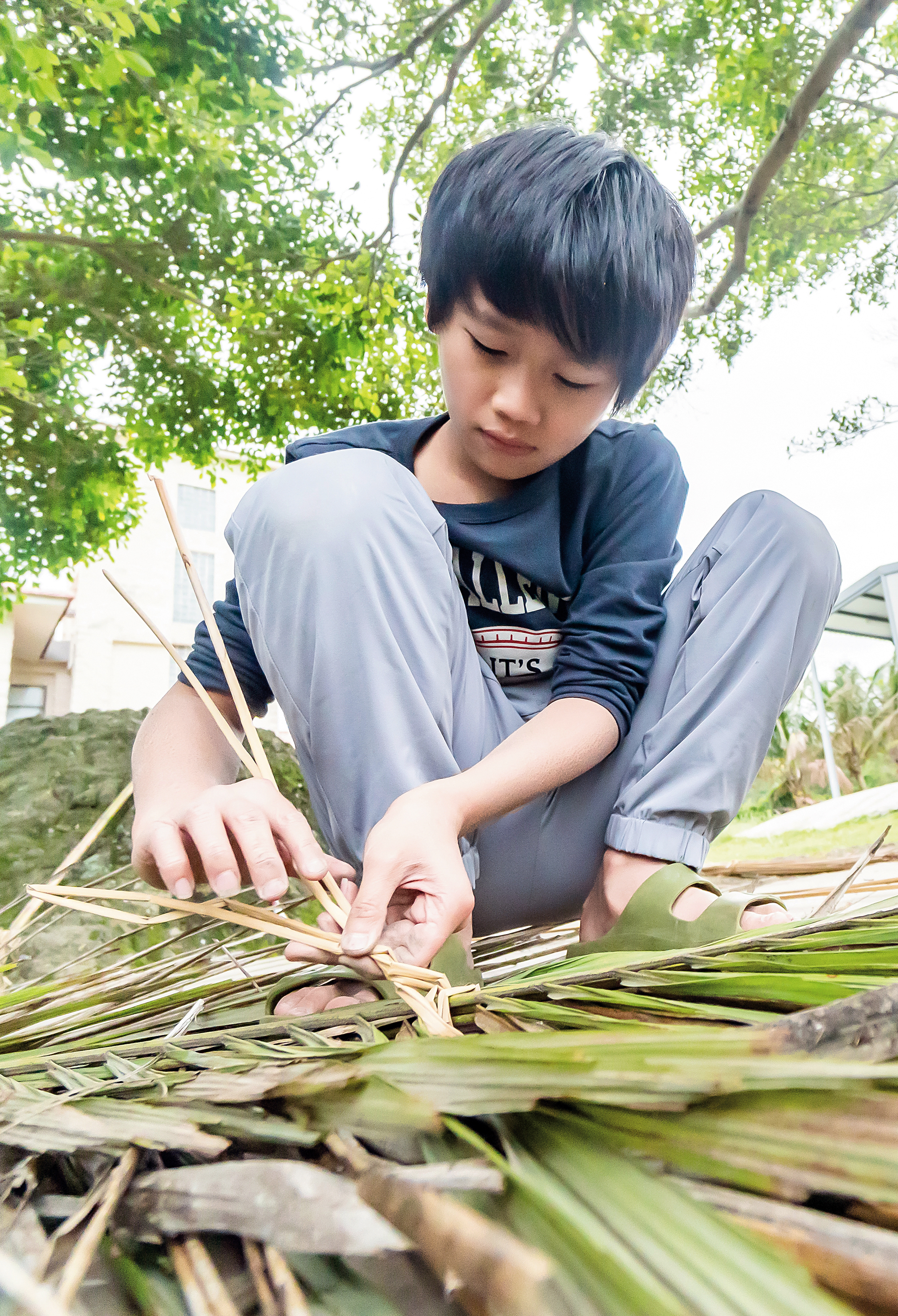 Accumulating tribal wisdom: Children learn the ways of their people by identifying plants and making brooms by hand.