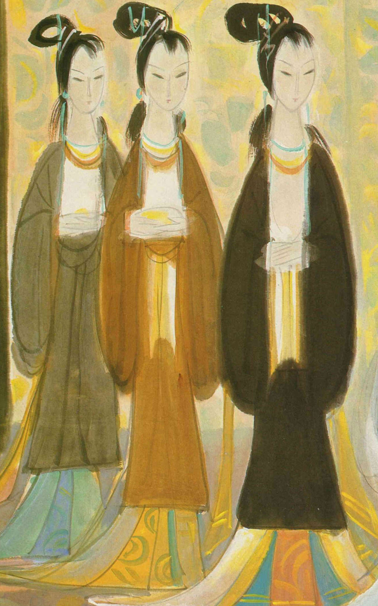 Under the masterly brush of painter Lin Feng-mien, these "phoenix-eyed" Chinese beauties radiate an elegant charm. (photo courtesy of National Museum of History)