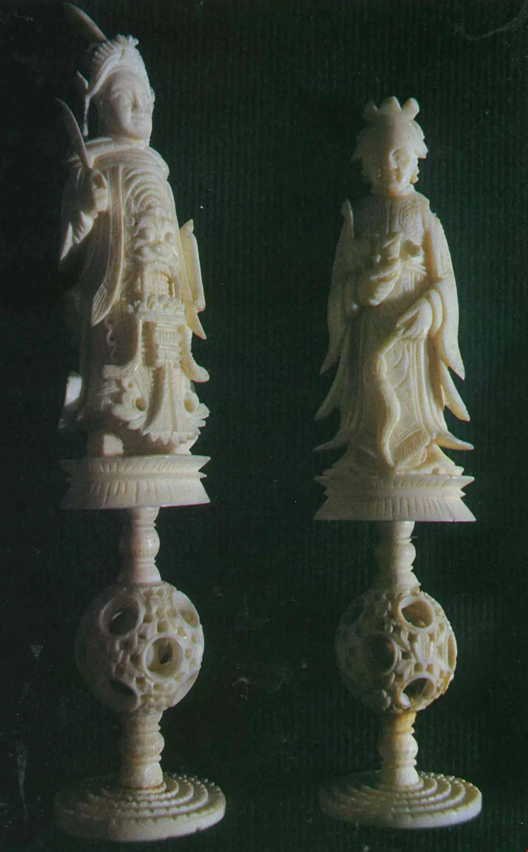 The Chinese form can also be used as a model for chessmen. This ivory set is kept in a museum in Spain. (photo by Arthur Cheng)