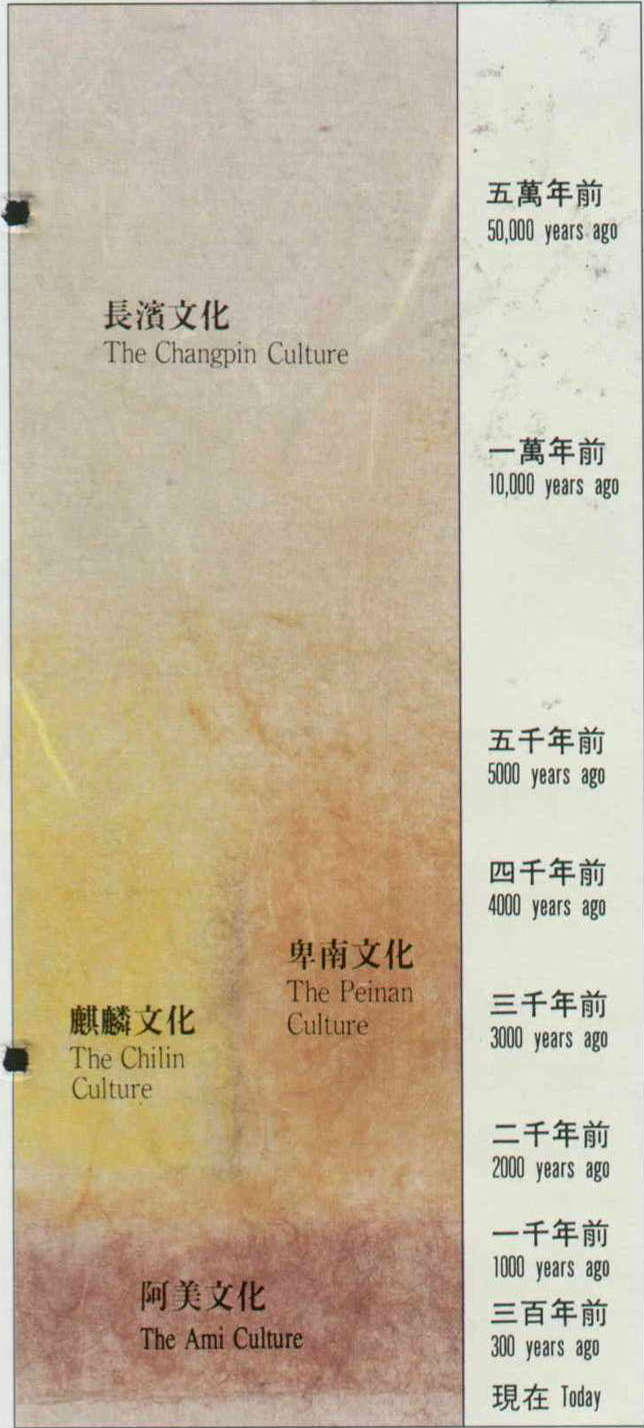The people of the Changpin Culture came over during the ice age, when the ocean waters were in retreat and Taiwan was still linked to the mainland. At the time, the population was sparse, the tribes small and nomadic. The people survived off of hunting, fishing and gathering.