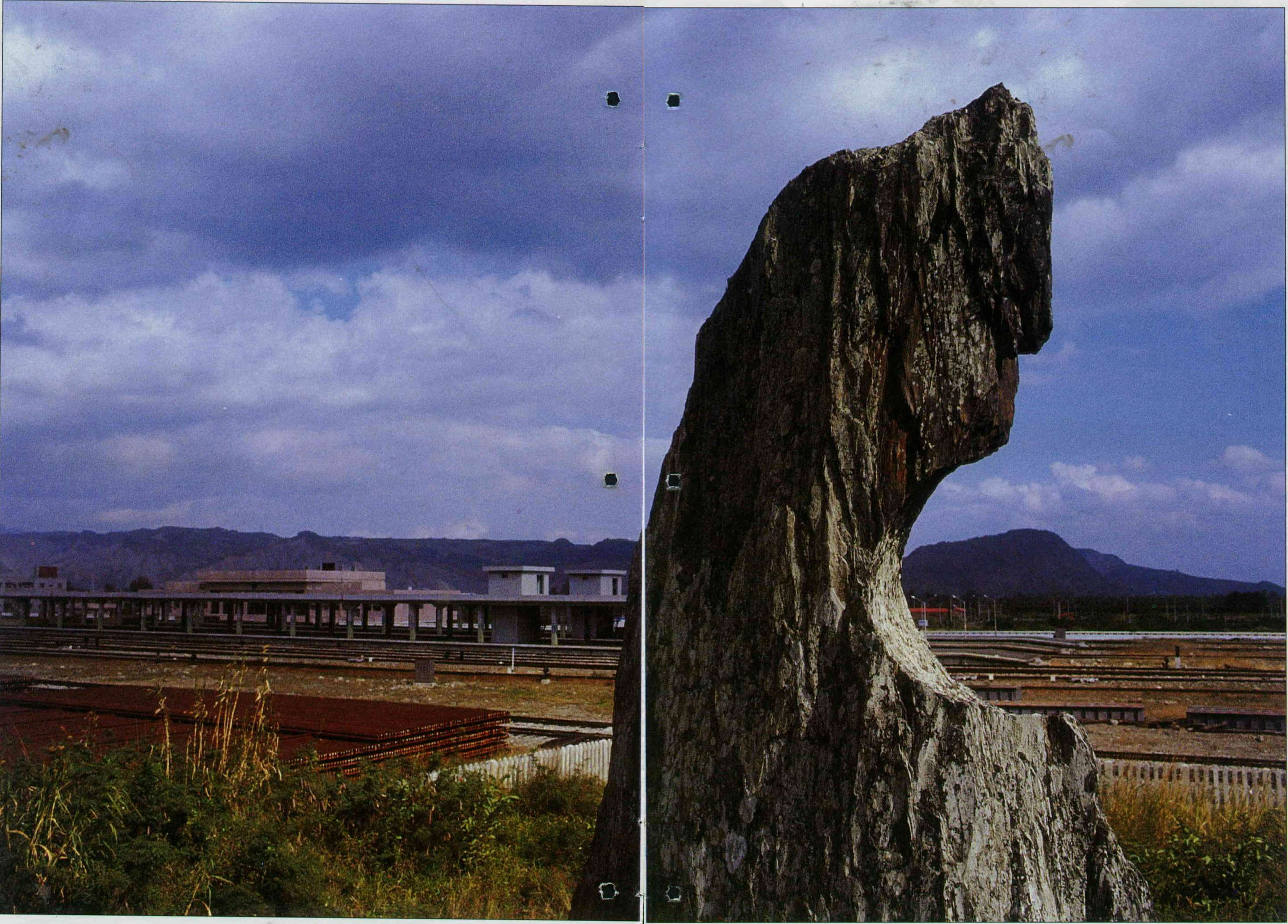 I'm listed as a Class One Historical Relic. That's me, the flat, moon-shaped, hole-pocked stone pillar behind the New Taitung Train Station. Why was a stone pillar taken to represent a man? You shouldn't think it strange; in ancient times there was no photography and few artists who could paint, so stone pillars were used as a representations of a human image. They wouldn't bust after installation and were part of our culture.