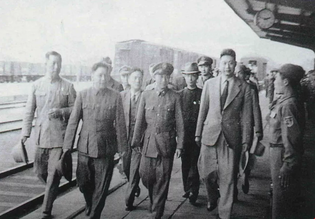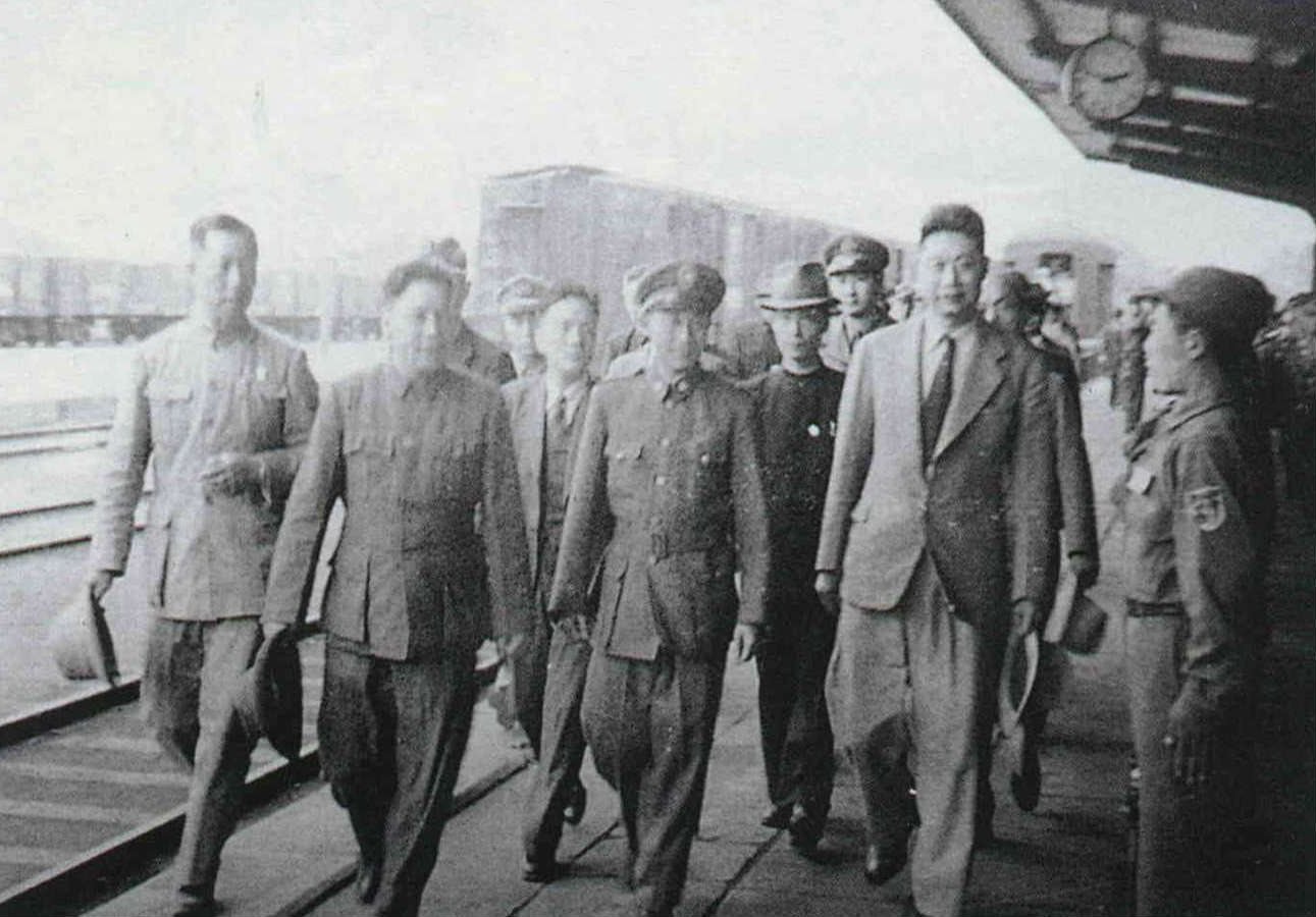 On June 14, 1949, Chiang Ching-kuo flew to northeast China to observe the situation and boost the morale of the armed forces there. At the time the northeast was in a state of turmoil, and Chiang Kai-shek wrote some dozen letters which he entrusted to Chiang Ching-kuo to deliver to his generals. This photo was taken in the Anshan train station.