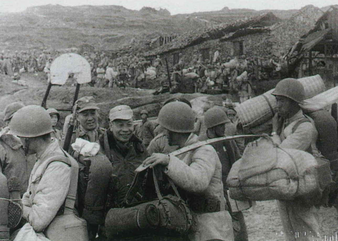"Beginning at 5:00 people gathered in three harbors, forming long lines," wrote a reporter about the retreat from Dachen. "Whole families, including infants and elderly, came with their simple luggage and in a remarkably orderly fashion boarded the small boats." This photo gives a good idea of what it must have been like.