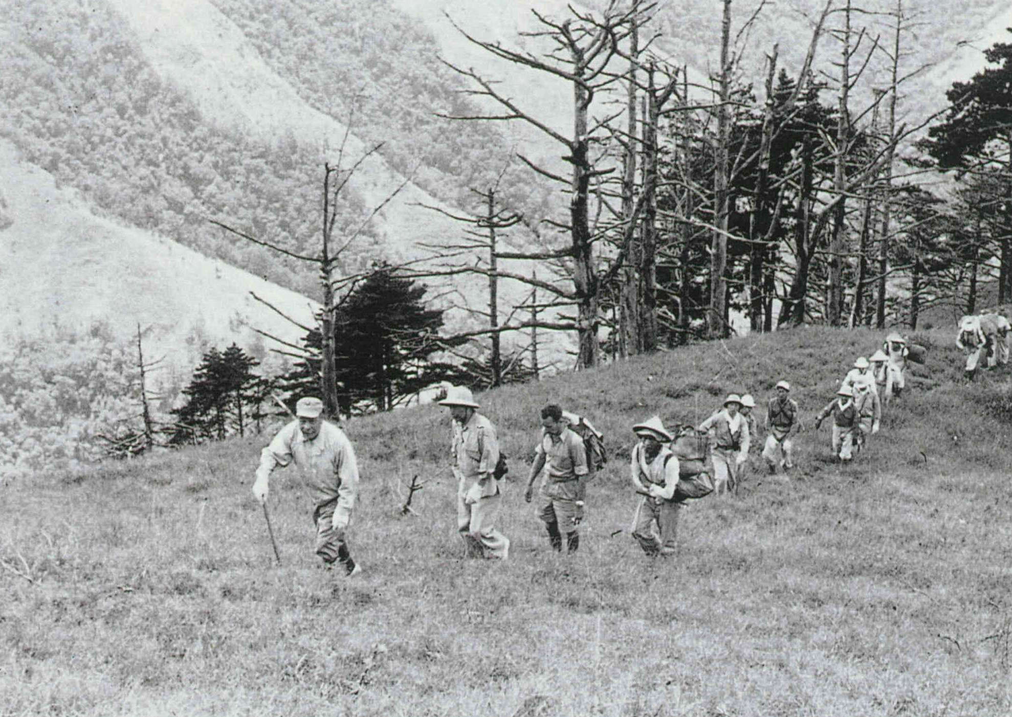 Work on the first cross-island highway began in 1956, and Chiang twice led teams looking for suitable routes. This picture was taken in 1959.