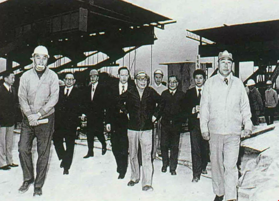 As premier, Chiang Ching-kuo stressed investment in major public works projects, thus creating demand in the domestic market. In April of 1977 he visited a China Steel mill. (courtesy of the Central News Agency)