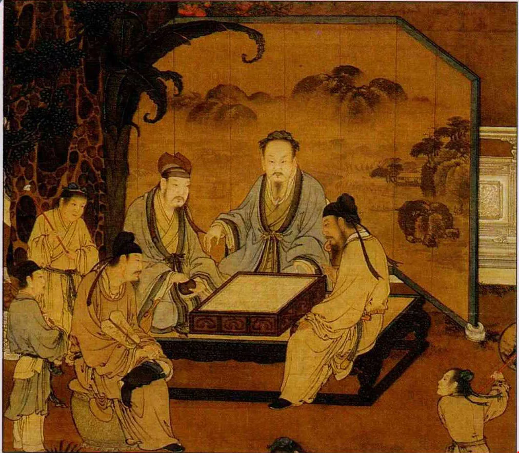 The literati gambled over chess, and drank a cup of wine if they lost, giving their gambling a more distinguished style. (photo of the Sung dynasty painting Eighteen Scholars courtesy of the National Palace Museum)