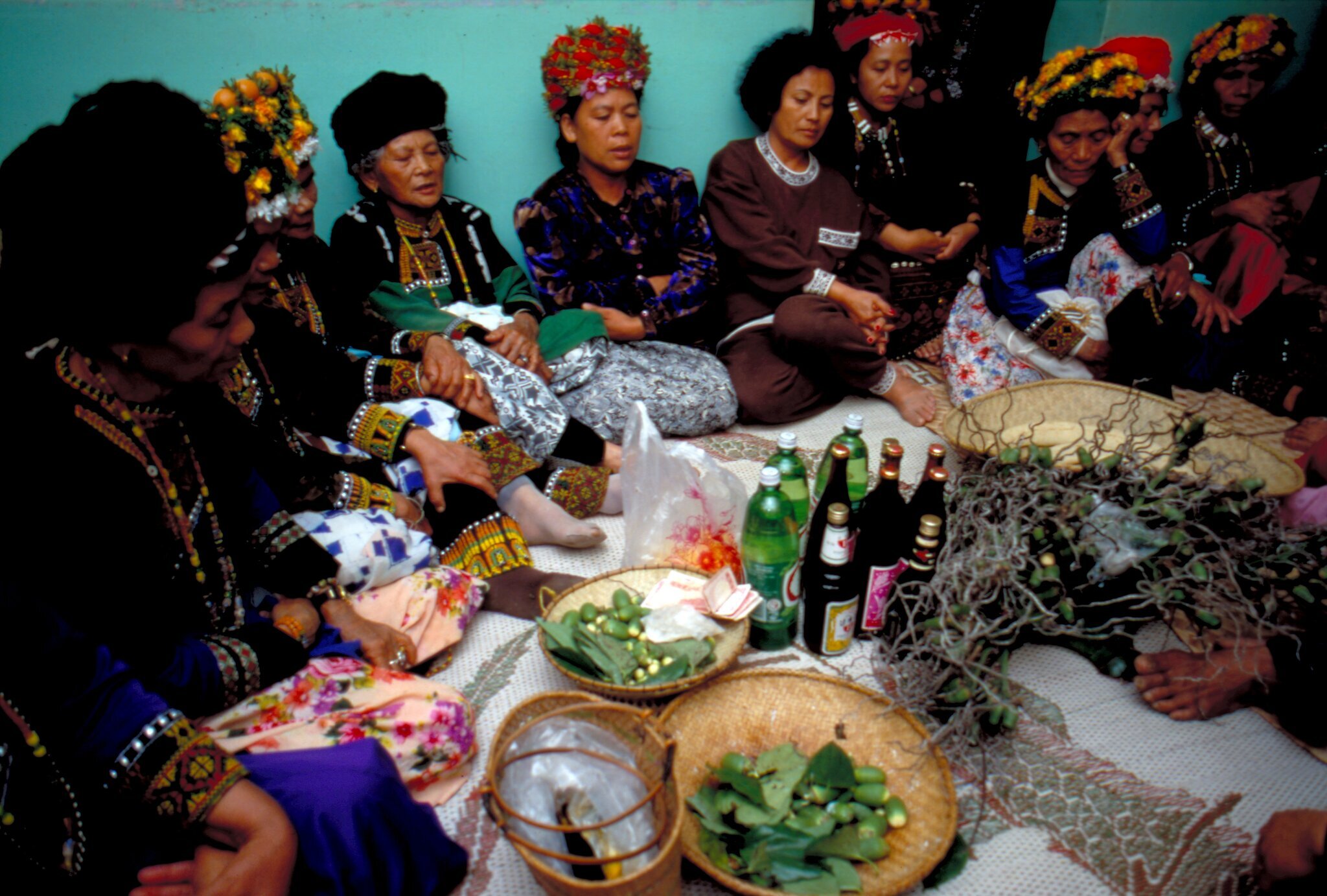 At a Paiwan wedding in Santimen Village, Pingtung County, the old folks gather in the home of the newlyweds and sing song after song, from the origins of the tribe to the feats of the various chiefs and heroes to a blessing on the bride, one person leading and the rest following along. "The gods blessed us with a daughter," they sing, "and now they're letting her go--is that fortune or misfortune? Now that she's leaving, I only hope she doesn't look back," while the bride and her mother hug each other and cry. To comfort her, the leader sings, "If you can't bear to lose your daughter, maybe she should be turned back into an infant, and you can bring her up all over again!" They sing into the wee hours of the night, until some of the older people, as much as they cherish the occasion, start to nod off, singing, "What's wrong with our eyes? They're misting over. These tears are so sweet I could eat them."