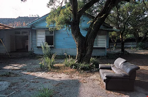 Their future uncertain, the sprawling Shantzuhou American military housing, sitting on the periphery of the Taipei basin, bears silent witness to half a century of Taiwan's history. Today some of these houses are cared for by renters, showing gorgeous, tidy exteriors and unique, exotic charm; others have lain vacant for years, appearing untidy and dilapidated inside and out, as if in ruins. In these pleasant, quiet small-town environs, the Bank of Taiwan's stark and imposing signs are ever-present, warning people not to enter.