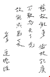 An expert in law and finance, Lai is also a lover of the Chinese classics, especially the poetry of Su Dongpo. Below is a quote from Lao Zi that Lai wrote out for us.