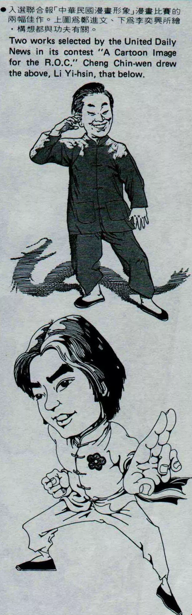 Two works selected by the United Daily News in its contest "A Cartoon Image for the ROC" Cheng Chin-wen drew the above, Li Yi-hsin, that below.