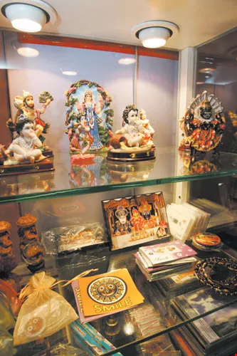 The items sold by the center, from the CDs of hymns to Krishna to the little plastic angels, all have a positive feeling about them.