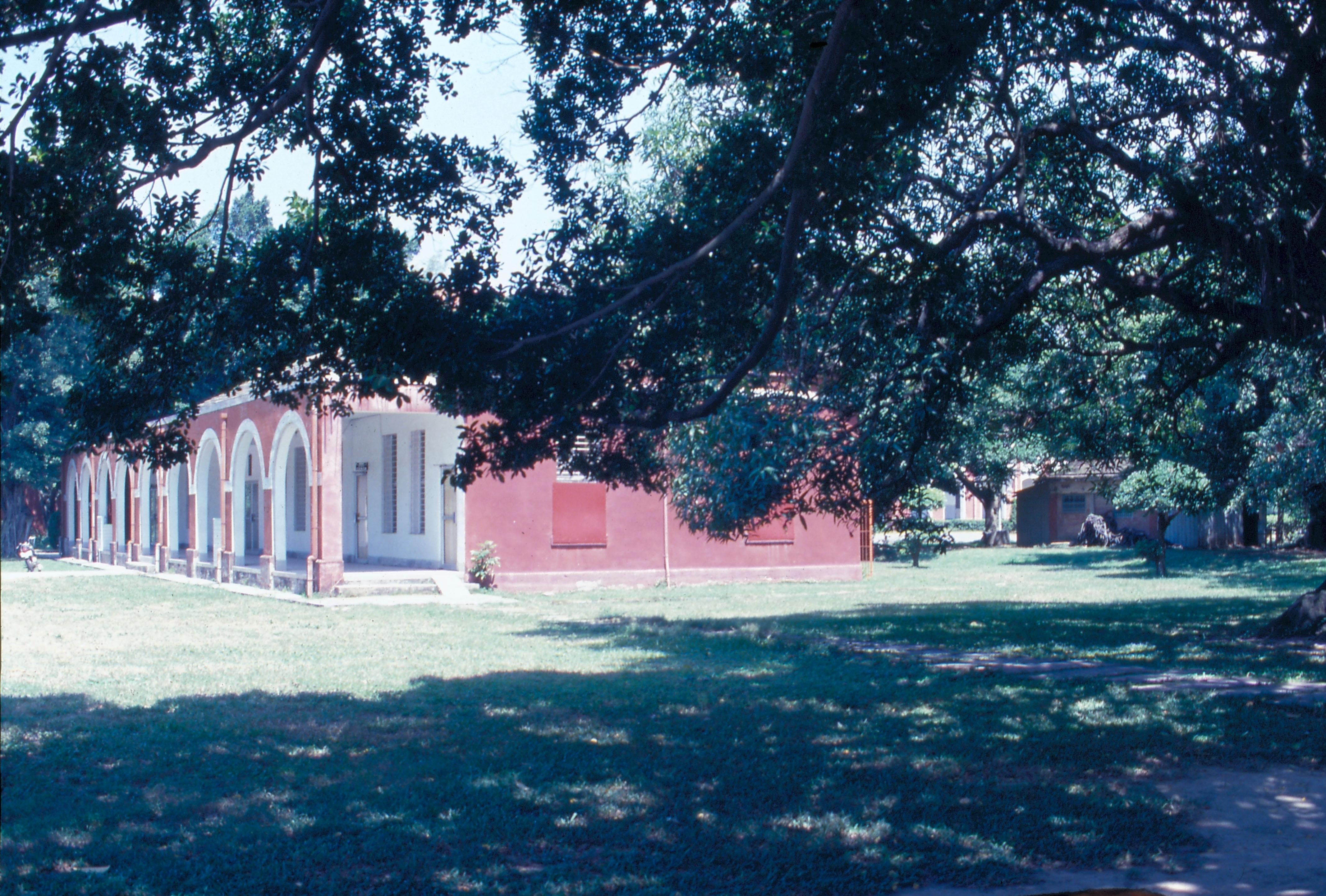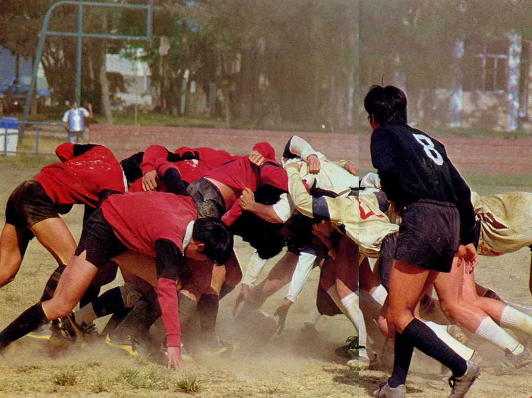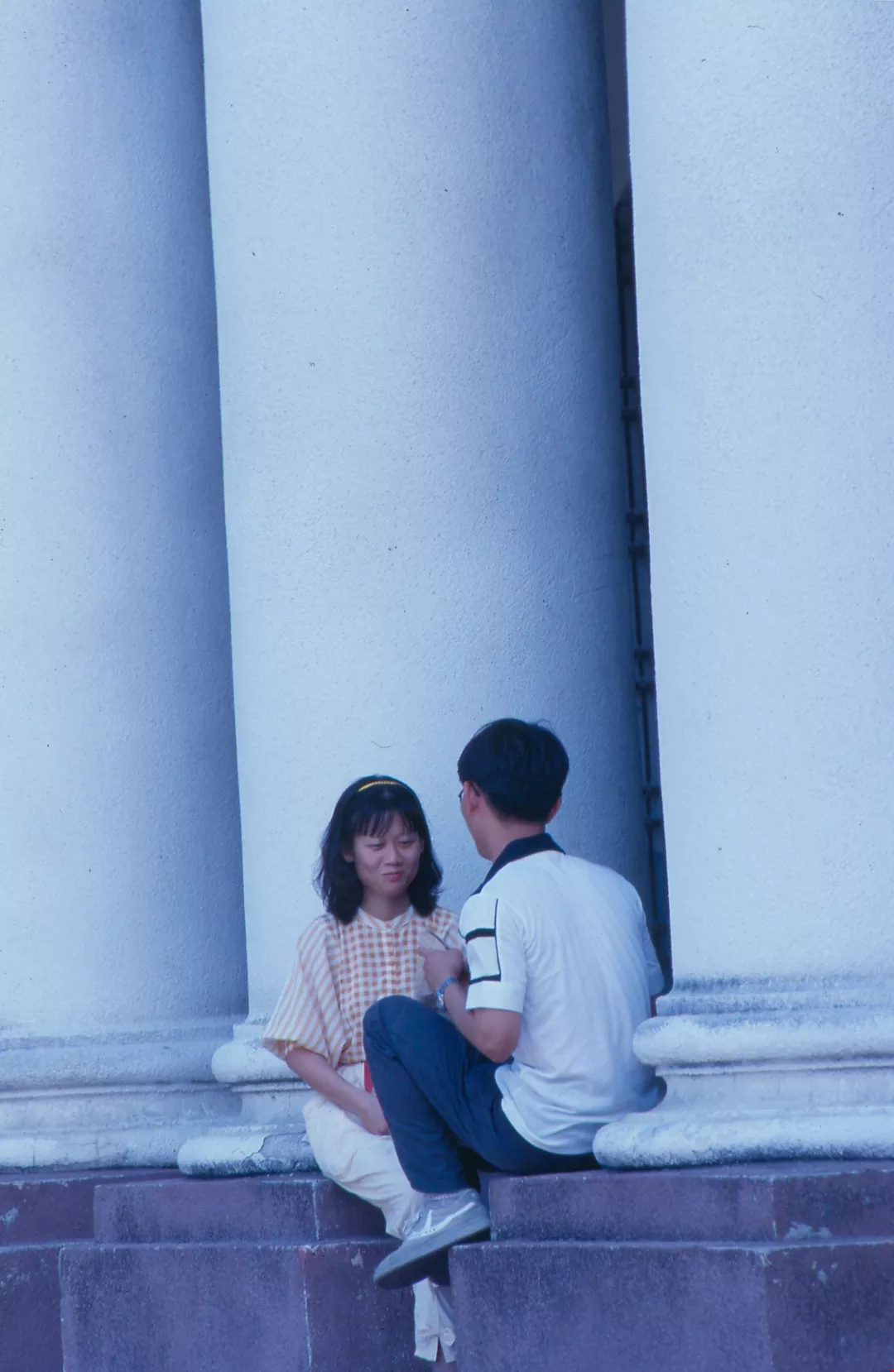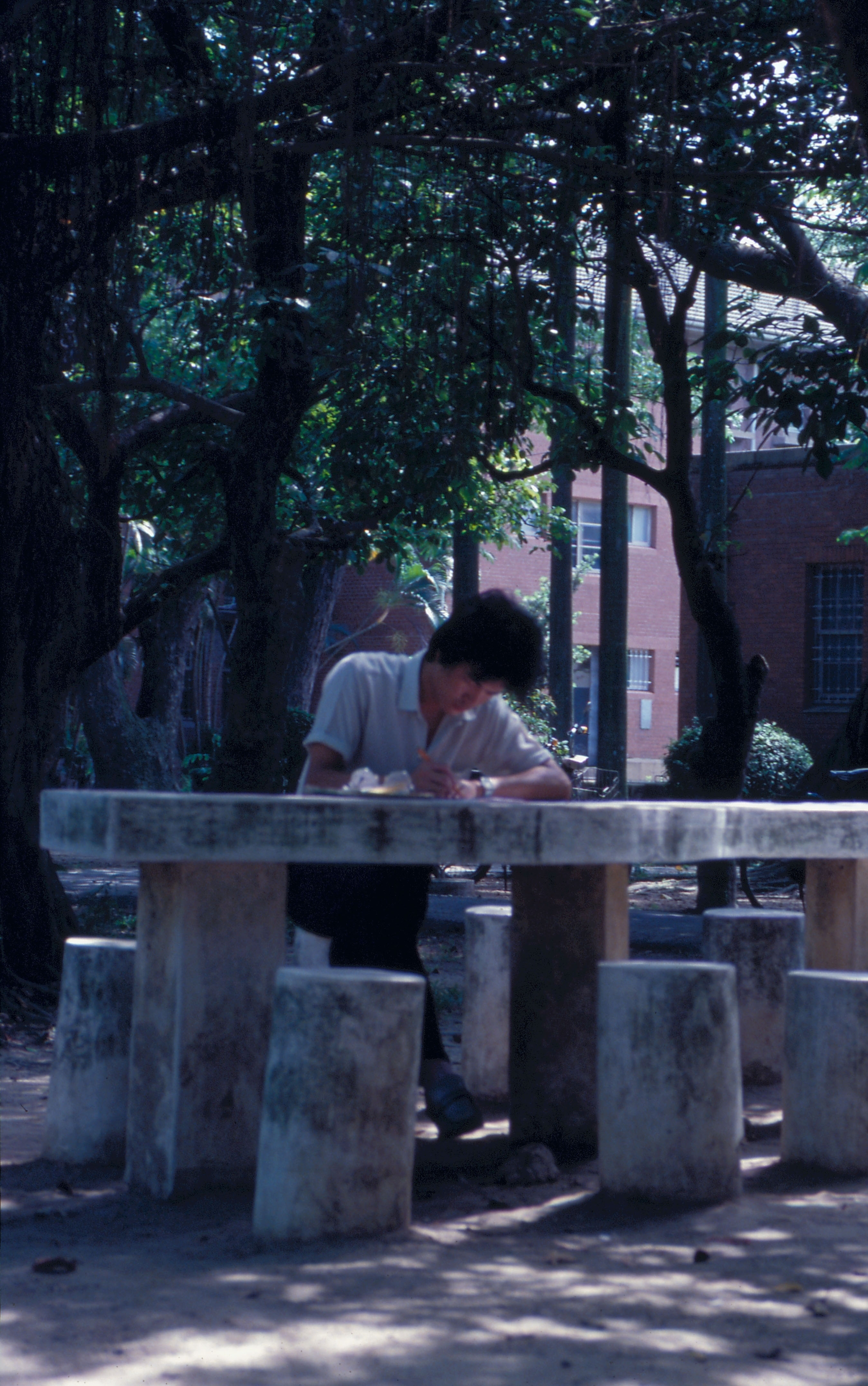 1. The Kuang-fu campus has a world standard athletes track. The 10-story men's dormitory is in the background. 2. The school's rugby team is quite accomplished. 3. Students often socialize in the many restaurants near the campus. 4. Small shops such as this cater to student needs. 5. Chatting under an old Banyan tree. 6. These majestic columns make the Liberal Arts building a favorite meeting place.