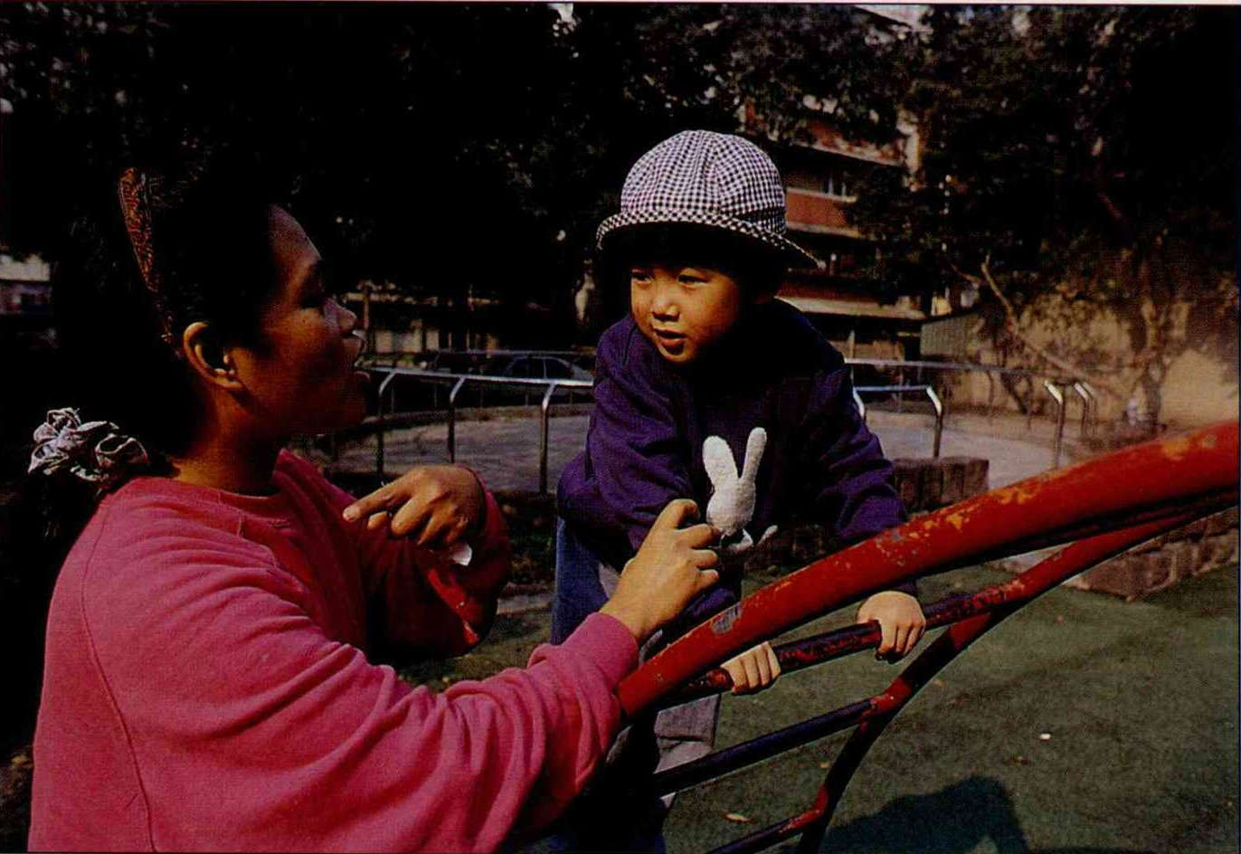 Chiang Wen-lan, who knows the joys and frustrations of a nanny's life as well as anyone, explains that looking after children requires an emotional commitment, and that in fact the key to such a commitment is in the hands of the parents. But some parents don't respect the nanny's right to her own time, and often do not turn up to collect their children until very late, while others are too stingy and never think to give the nanny a raise or a New Year's bonus. "If after a year a nanny says she no longer wishes to look after a child, it may be a hint to the parents that it's 'time for a raise'!" reveals Chiang Wen-lan.