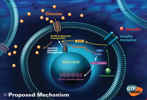 In 1957, American biologists Kenneth Schwarz and Walter Mertz discovered GTF in pig kidneys. They later showed that this complex of vitamins, amino acids, and trivalent chromium plays a key role in activating insulin receptors and also reduces blood sugar levels. Trivalent chromium is the most important element in GTF.