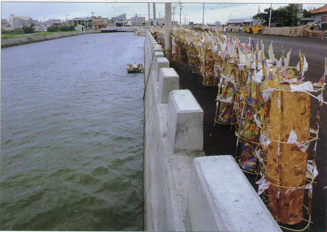 During a typhoon in 1845, coastal villages along the belt of land between Peikang and Huwei streams were wiped out by high seas. Dead were scattered everywhere, and the few survivors had no choice but to perform a collective burial, and establish a temple to help the departed souls cross from purgatory. That was how the custom of the ch'ien-shui-ts'ang ceremony began, which carries on to this day. The drowned souls cling to the shui-ts'ang (a length of bamboo that is spun like a prayer wheel) to pull themselves from the water, and be saved from the bitter sea.