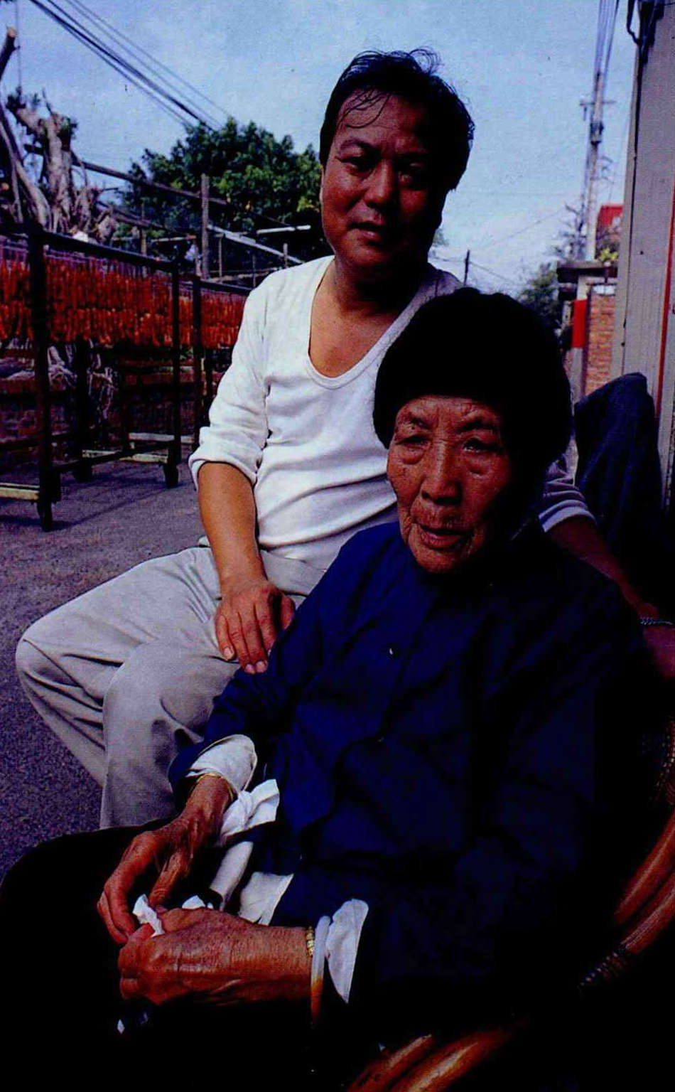 The Sichuan-style sausage and cured pork of Hsinchu City's Air Force Fourth Village are made by the same methods which Chu Yang Pi-ching brought from her old home years ago. Though nearly 100, she still keeps a watchful eye on her grandson Chu Chien-kang to see he gets it right.