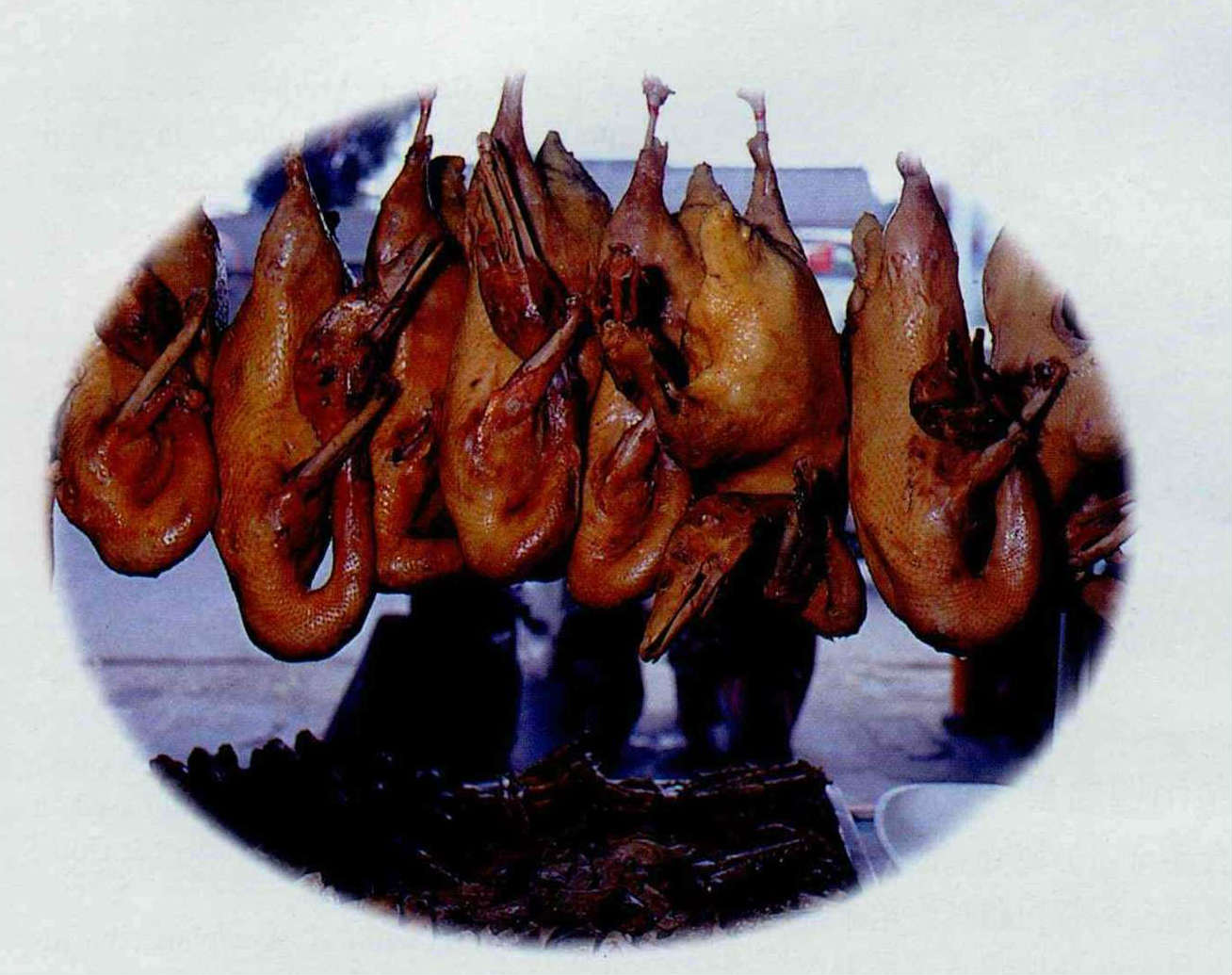 Another function of the village market was as a place where culinary knowledge was exchanged and where cooking styles merged. As housewives and older men, shopping basket on arm, chatted with whoever they met at the market or at roadside stalls, they would ask: "How do they cook this back where you come from?" Thus they swapped all kinds of recipes. Chou Chao-ching says that in this way her mother learned to make all kinds of tasty foods, such as candied ginger, candied garlic, chilli sauce, zongzi (steamed glutinous-rice dumplings), sausage, cured pork and fermented beancurd. "The women in military dependents' villages in those days all seemed to get along very harmoniously on the surface, but secretly many were very competitive, and this was revealed most clearly in the way they tried to outdo each other in the kitchen. Even the most ordinary housewife might be capable of making dishes in the style of several different Chinese provinces."