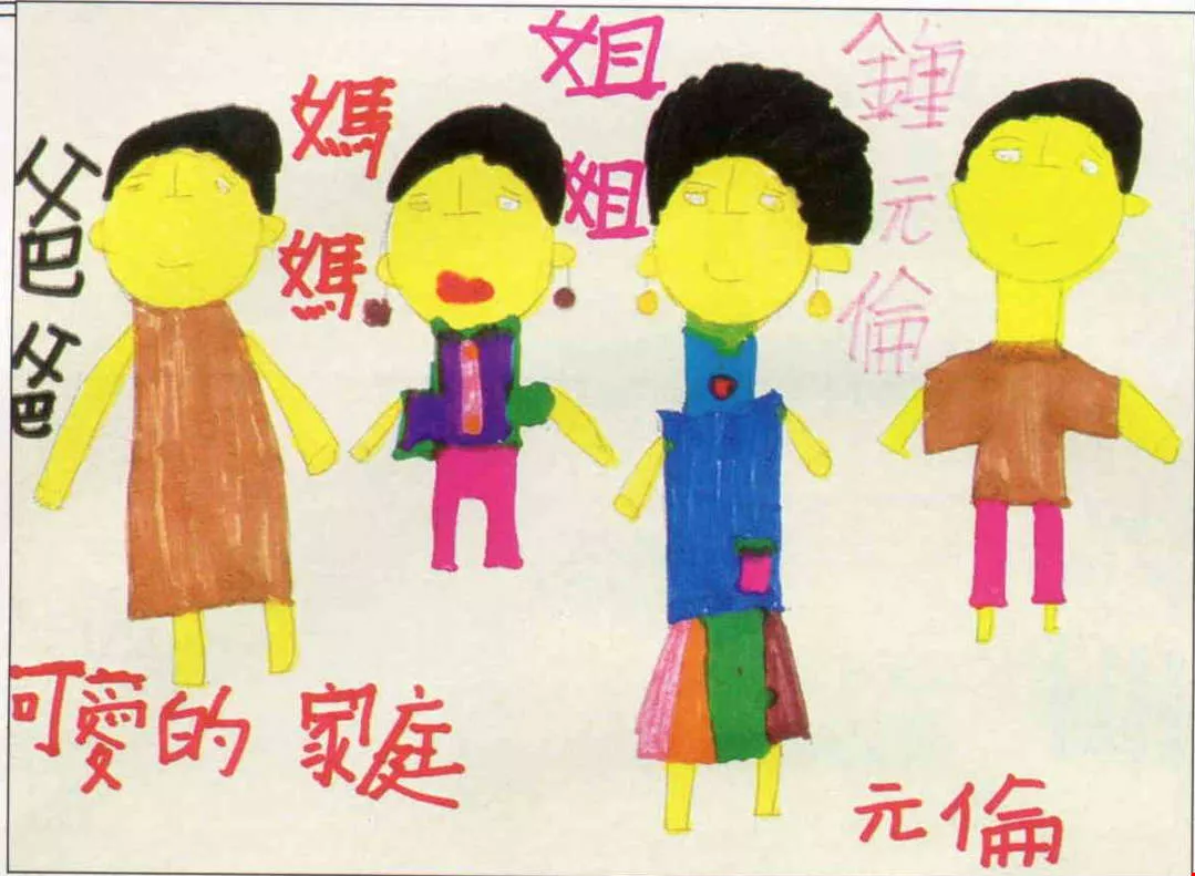 Yuan-lun drew this picture on the subject "My Family." He has two older sisters, so why did he draw just one? Because the eldest is off studying overseas.
