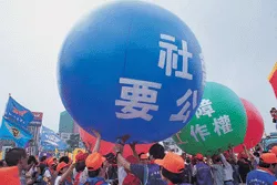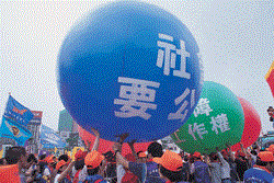 Unemployment is being pushed upward by factory closures, bankruptcies, and the migration of industry to offshore locations. Over a thousand workers took to the streets on May Day to demand that the government and employers take measures to protect their jobs. (photo by Pu Hua-chih)