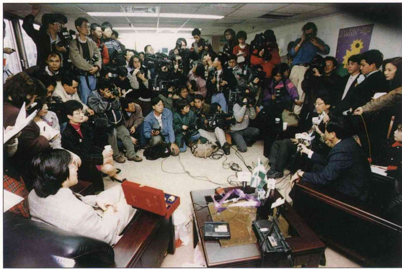 Besides providing intellectual resources, overseas supporters are also crucial sources of financial support. Last November, during the runup to the legislative elections, various local groups of Friends of the New Party cooperated to run an ad in the Chinese-language US-based newspaper World Journal, and within seven days they raised over US$70,000. Cecilia Yen brought the money to Taiwan and presented it to the New Party at the "Night of New Hope" dinner party.