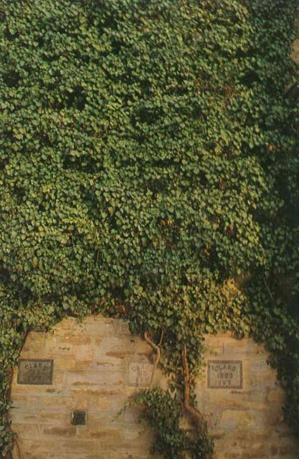 According to custom, each graduating class has its year set in the ivy-covered walls to show its affection for the school.