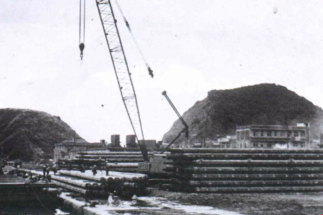 Land reclaimed from the sea is providing sites for many facilities at the newly developed Suao port on the northeast coast. The earth comes from nearby hills and is transported by an elevated system of moving belts. This is the first use of continuous belt transportation in Taiwan. Suao will supplement Keelung harbor.
