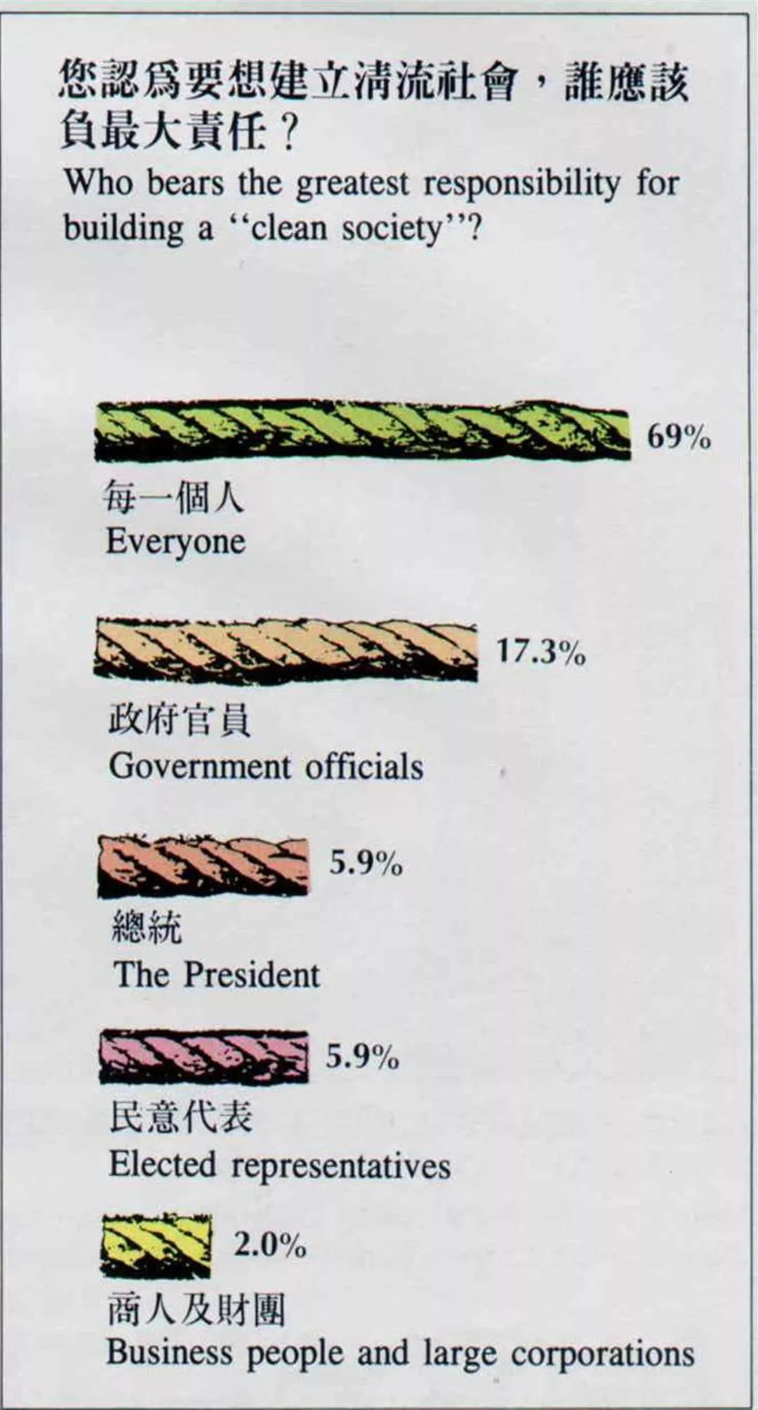 And currently, besides prosecuting and investigatory units, there are also the 1100 units responsible for government conduct and discipline (which were previously known as the second division of personnel departments and are now known as anti-corruption departments) doing anticorruption work in this country. These employ more than 4000 people and are attached to every government unit. Previously, one third of the leads for the cases investigated by the Bureau of Investigation were provided by these anti-corruption departments. If an independent anti-corruption commission was formed, what would happen to the people employed in these anti-corruption departments?