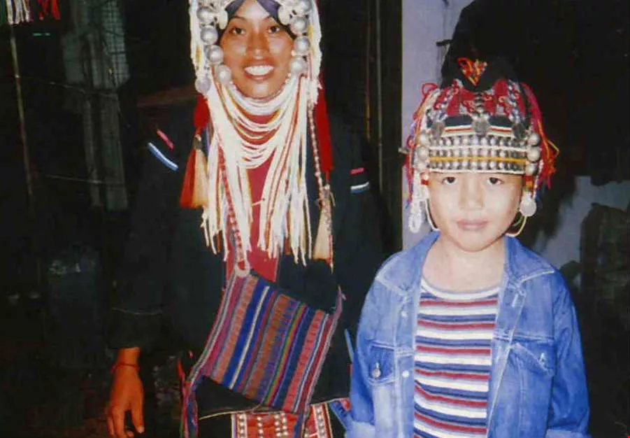 The author's daughter poses for a picture with a young Akha girl from Mae Salong village (left).