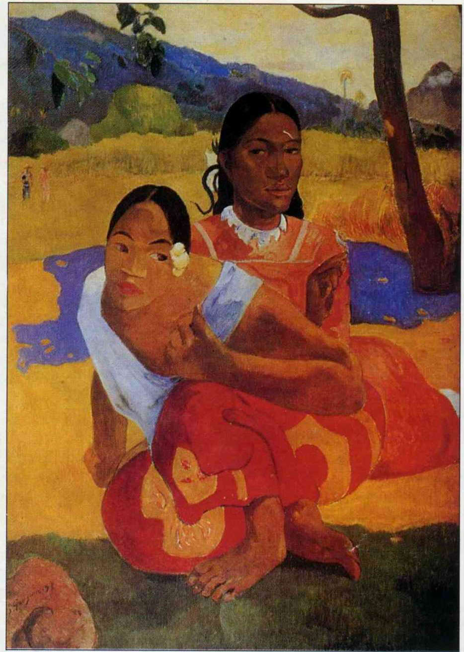 Lovely Tahitlan women, with their broad noses and thick lips, represented a natural beauty to Gauguin that he admired. (reproduced from Famous Contemporary Paintings of the World)